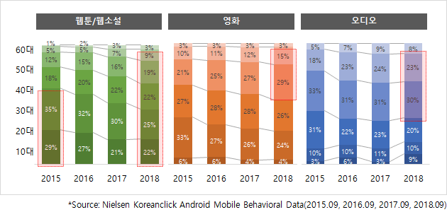 [시장분석] 모바일 콘텐츠 웹툰/웹소설, 영화, 오디오 서비스의 특성 및 이용패턴 분석 본문