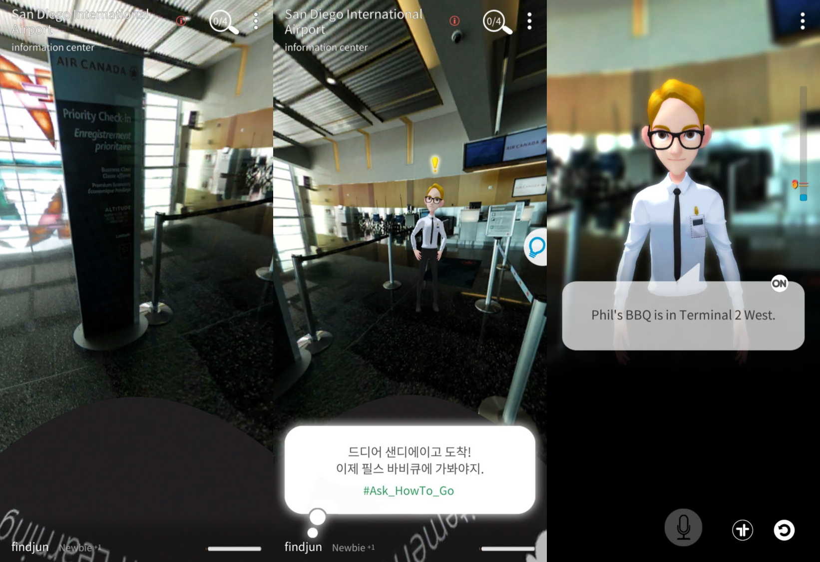 전시장에서 화장실을 찾거나, 주문을 하거나,