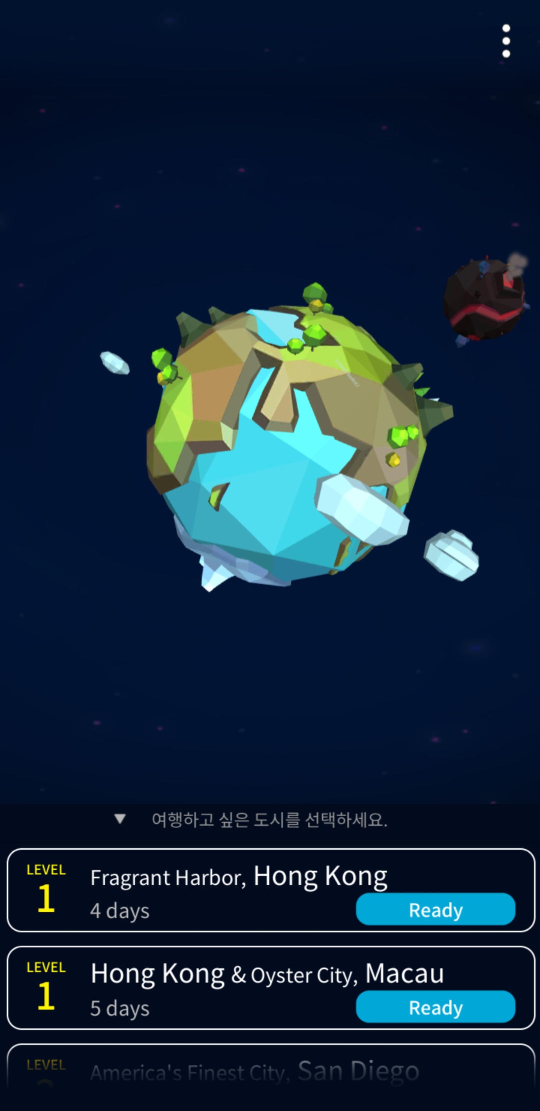 간단하게 튜트리얼을 통과하고 나면, 여행하고 싶은 나라를 선택할 수 있습니다.