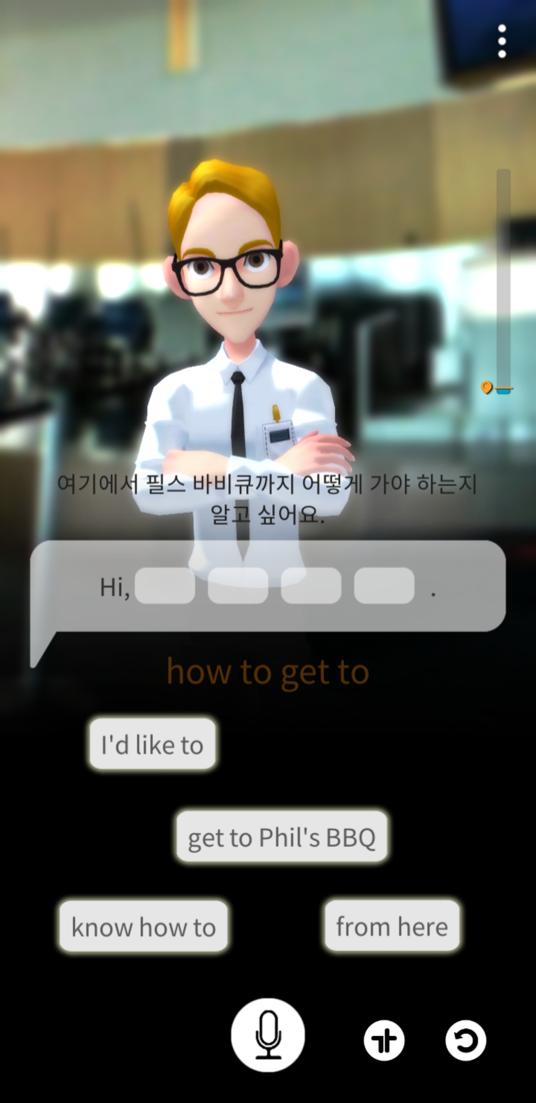 직접 문장을 선택하거나, 음성언어로 영어 말하기가 가능합니다.