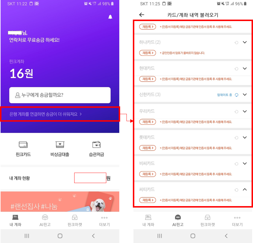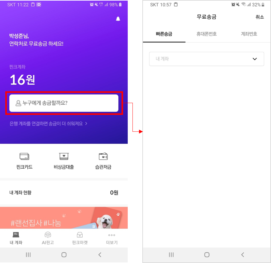 무료송금이 가능한 돈관리 재태크 앱 "핀크" : 짱절미카드 귀염 본문